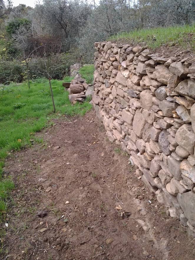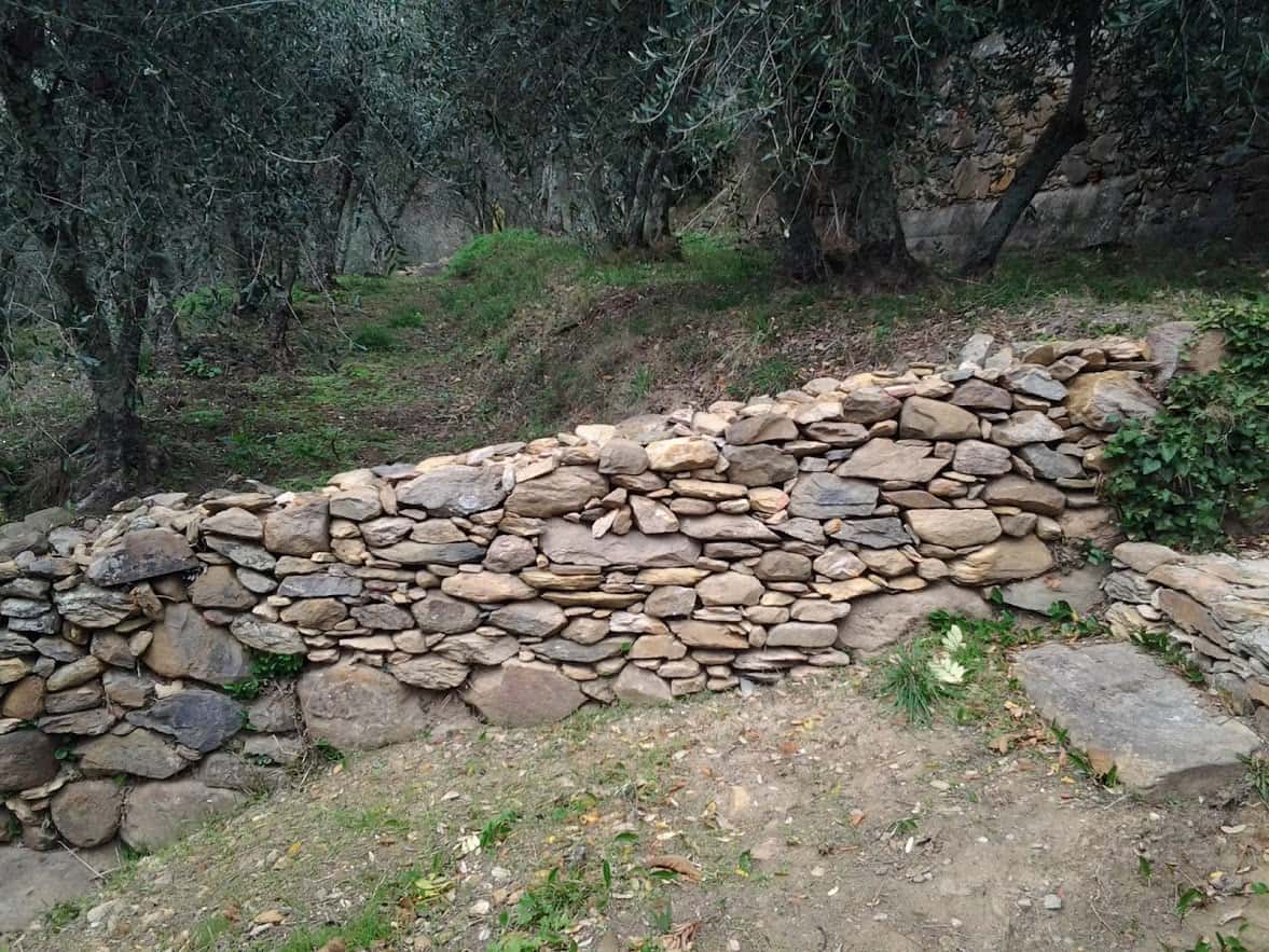 Muretti a secco e canalette integrati funzionano come sistema di drenaggio dei terrazzamenti del Monte Pisano