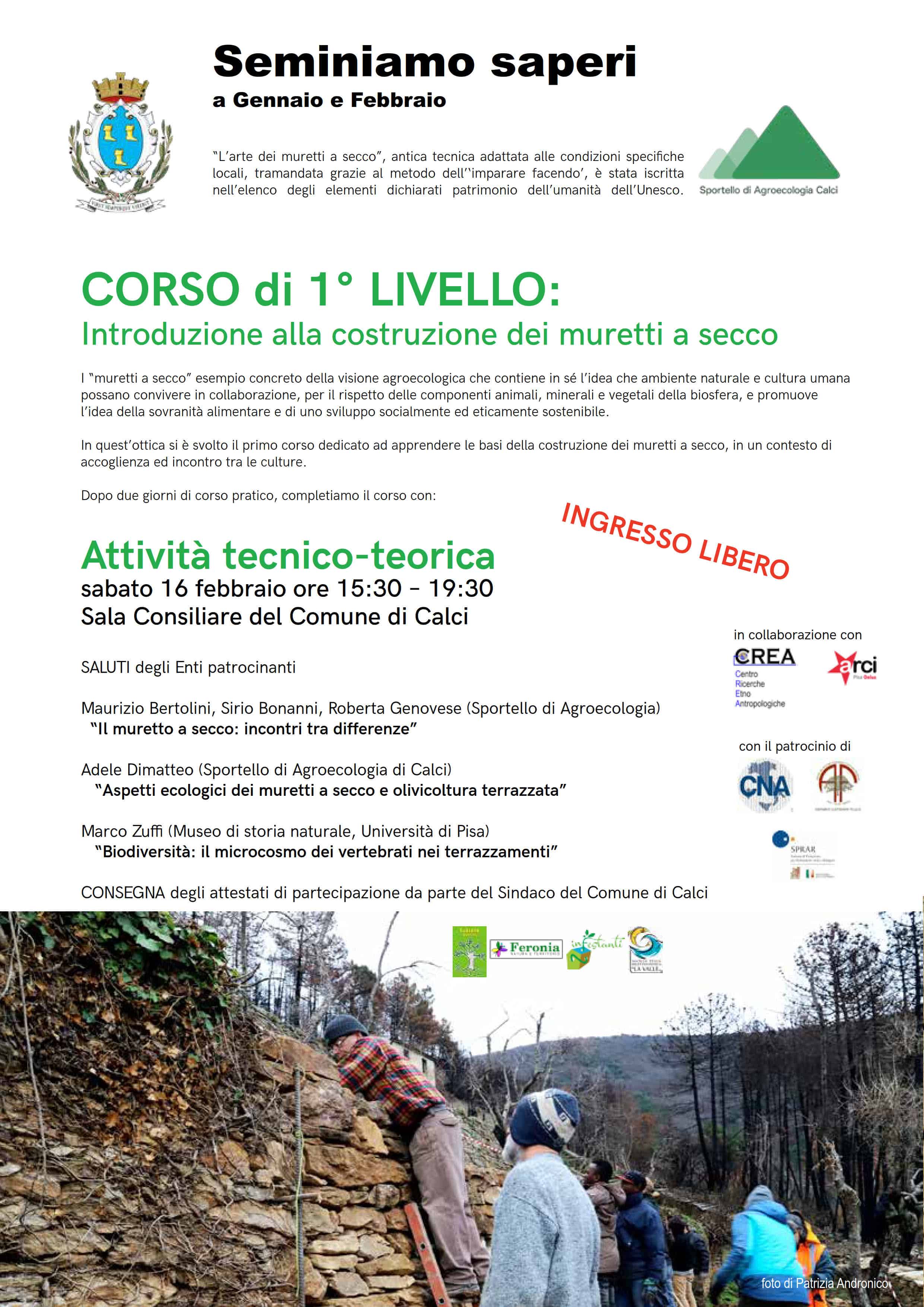 Corso introduttivo all’arte del costruire e ripristinare i muretti a Secco. 26 e 27 gennaio e 16 febbraio 2019. Resoconti.
