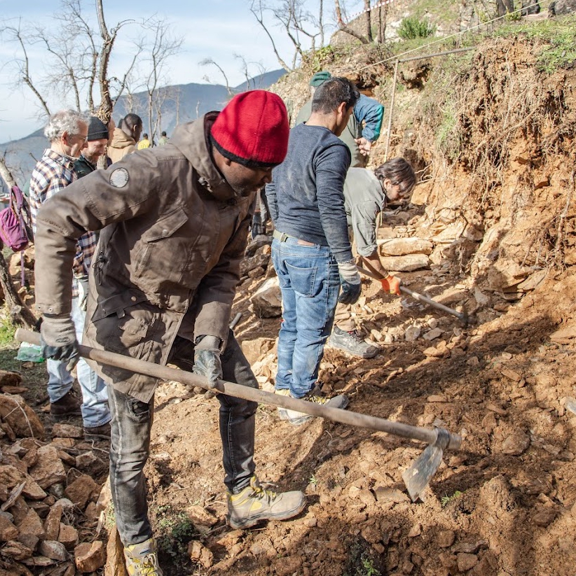 The September 2018 fire compromised the drainage network and erased the anchoring effect that tree roots have on the soil. It was therefore essential to restore the drainage network, rebuild the dry stone walls, and perform regular maintenance. Neglected dry stone walls tend to bulge and eventually collapse, and if the channels are not periodically cleaned, they tend to clog. For these reasons, the Agroecology Office of Calci organizes Dry Stone Wall Schools during which it is possible to observe and participate in the construction of a dry stone wall and the restoration of sub-slope channels.