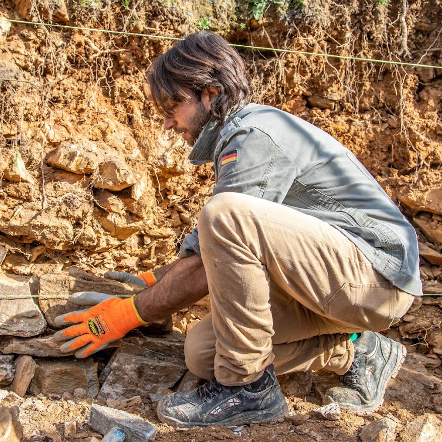 The construction of a dry stone wall begins with preparing the “lenza”: its downhill edge is split off, giving it an incline of about 30° uphill. This provides the lenza with a slope that allows it to more easily accommodate stones and better withstand the downhill pressure of the embankment. To prevent landslides, the entire lenza has an incline uphill. Next, stones that will constitute the wall are selected. Generally, those available at the construction site are used (often removed from the lenza itself), ensuring a local construction approach, and are carefully chosen by the “Mastro Muraiolo,” the artisan specialized in wall construction. The Mastro Muraiolo selects each stone so that it fits perfectly with those below it, giving stability to the wall. Smaller stones are placed at the back of the wall to facilitate water drainage into the soil. The dry stone wall is designed to channel excess water downhill from the lenza into the sub-slope channels. Therefore, the use of cement is strongly discouraged, as it would make the wall nearly impermeable. Finally, the sub-slope channel is dug, a trench placed at the base of the wall and parallel to it, where drained water flows.